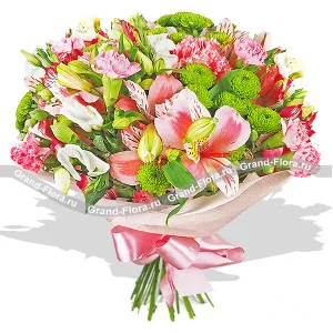 С любовью и нежностью - букет из кустовых хризантем, роз и альстромерий