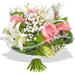 Виртуальная любовь - букет из белых лилий и альстромерии