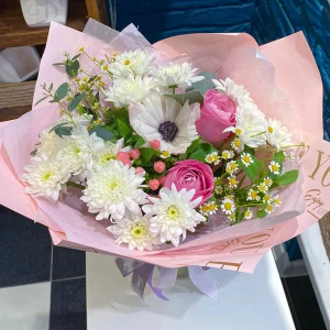 Твой апрель - коробка с желтыми кустовыми розами и хризантемами